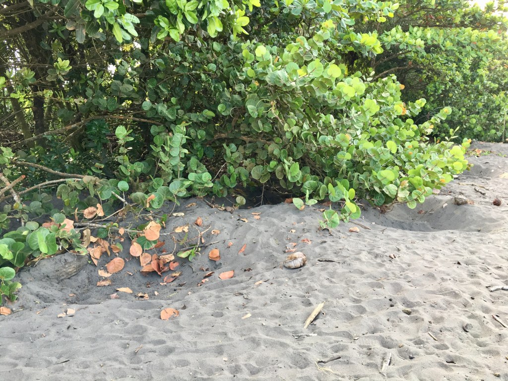 Bernardo showed us the turtle nests in the sand. We also saw some strange markings in the sand that Bernardo told us were turtle tracks from a female turtle going to and from the sea.