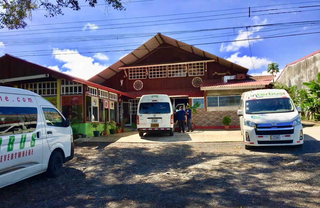 With such a long ride, we were extremely happy to find that the vans do make stops along the way. This serves the purpose of allowing passengers much needed bathroom breaks and the opportunity to purchase food and drink. It also allows the vans to transfer passengers from one to another, as needed. Interestingly, we did not stop at the same places on our trips to and from Playa Cocles.