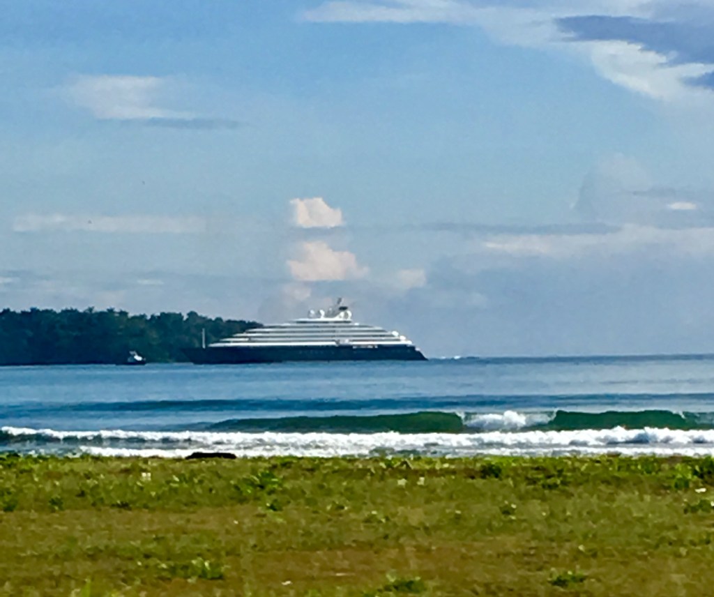 Interestingly, the Chinese are financing road improvements on the Caribbean side of Costa Rica. The front-seat gringo on the way to Playa Cocles told us that this was China exerting “soft” influence here. However, the influence extends to infrastructure improvements only, and not to increased jobs. (I’m not complaining about better roads in Costa Rica, but jobs are also needed.) We were told that the agreement was that the Chinese government would finance the construction but that they would use Chinese workers. We were able to verify that based on who we saw doing the construction (Chinese), and also when we passed by a large camp where the Chinese workers live.