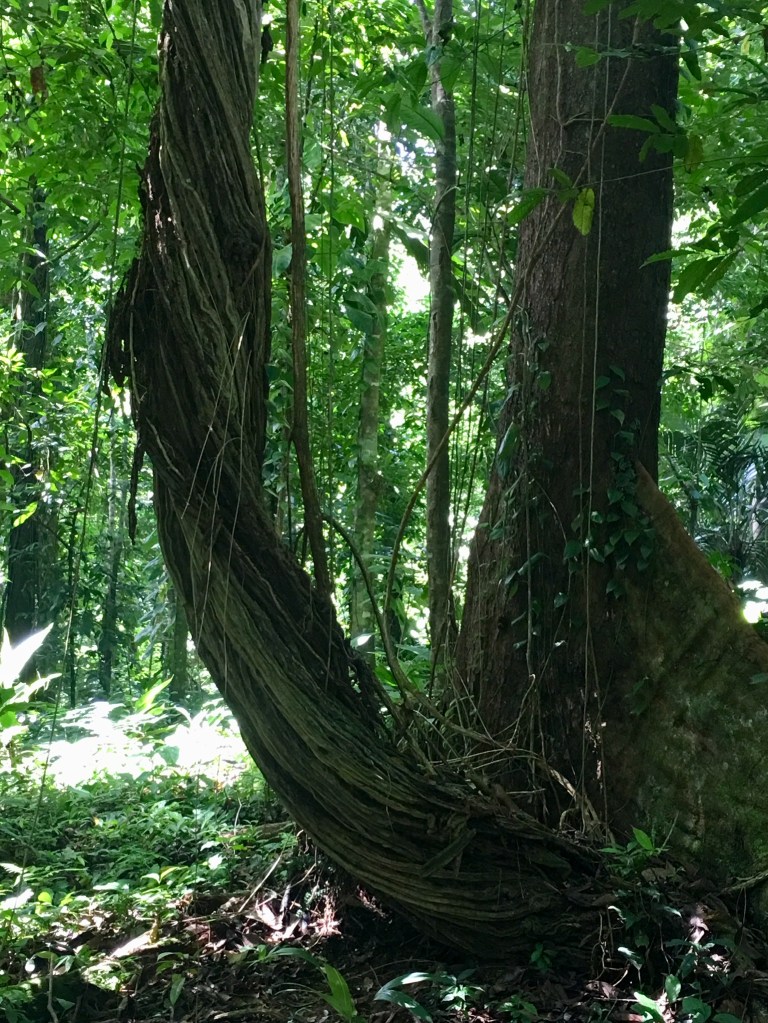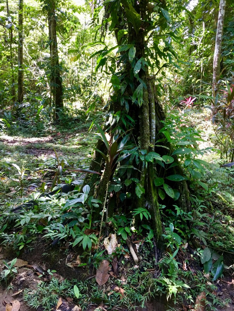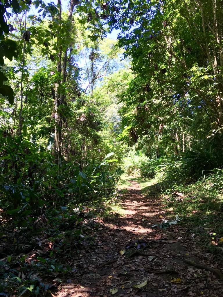 Once we crossed the bridge, we found ourselves on a wide path. It would be easy to go to this park and stay on the main path, no guide needed. But Jungle Man delivered on his name, and we soon broke off from the main path to less-traveled paths through the jungle, where we saw practically no one else. At this point I was ruing the fact that I had not brought my long hiking pants on this trip, as some of the paths we hiked were narrow and we were pushing through plants. I was really hoping I wasn’t getting too many scratches that would draw mosquitos and that my bug spray was working.