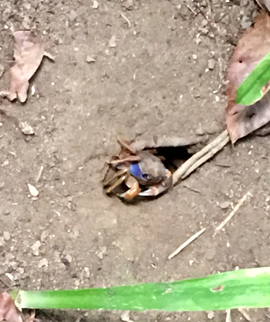 Like our tour in Tortuguero, the first creatures we saw were land crabs and spiders, and even the same type of spider, the Golden Orb spider. The Golden Orb spider weaves an incredibly strong web, that was used for fishing line by indigenous peoples and we were also told is being used for eye surgery.