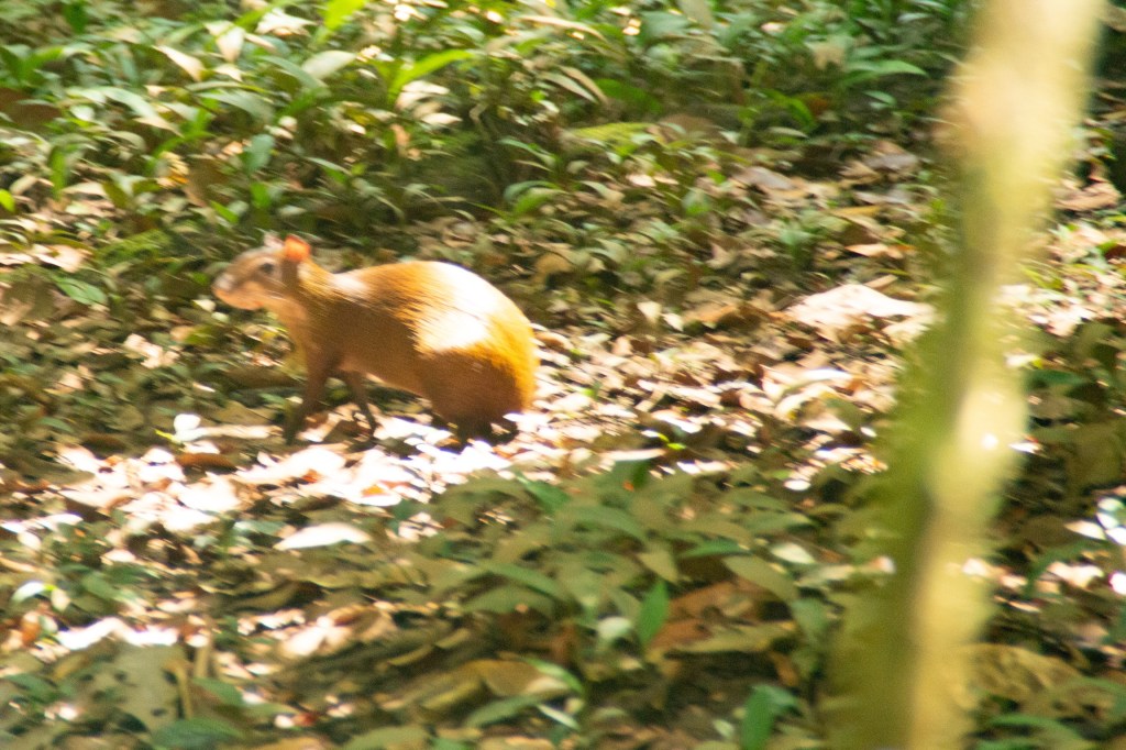 As we hiked along in the denser jungle, we saw a small snake, a toucan, a parrot, Bali’s lizard, an acouti (where we took way too much time to get a rather poor photo, due to the shadows), and various ants with stinging bites that we jumped over.