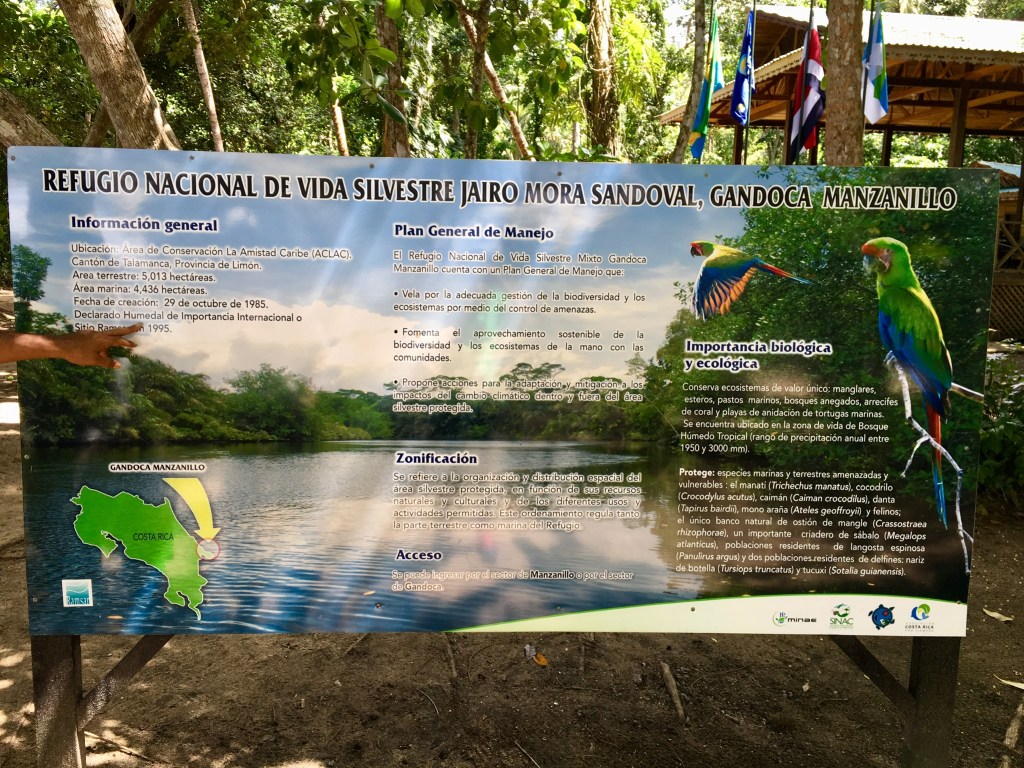 Jungle Man drove up to pick us up for the short ride to Gandoca-Manzanilla National Wildlife Refuge, where we would have our wildlife tour. During the drive Jungle Man was playing reggae music videos that displayed on his navigation console. Jungle Man asked if we liked reggae, and John responded yes, and mentioned Bob Marley and Wailers and Toots and the Maytals. Jungle Man kind of laughed and politely suggested that we should update the music we listened to (to the current century?). He told us who he was playing, but I can’t remember. Guess we’ll just stay stuck with our old music – we’re old, after all. By the way, we couldn’t tell how old Jungle Man was. However, we did learn that he had a 4-year old son, that he affectionately refers to as Jungle Boy. Jungle Man said Jungle Boy enjoys going with him on the tours because people give him tips, too. Jungle Boy did not accompany us on our tour.