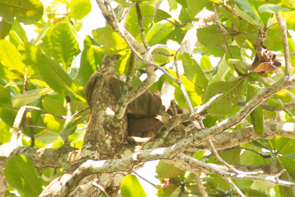 The sloth fest started when we crossed the road and walked near the hotel restaurant and beach. Jungle Man made a point to count each of the sloths that we saw. We lost track after 12. Like almost every other sloth we’d seen, they looked like a ball of fur in the tree. Jungle Man said that one of the sloth fur balls we saw was a mother with a newborn that she was still cleaning. Maybe this sloth fur ball looked a bit different, but it could have just been the power of suggestion.