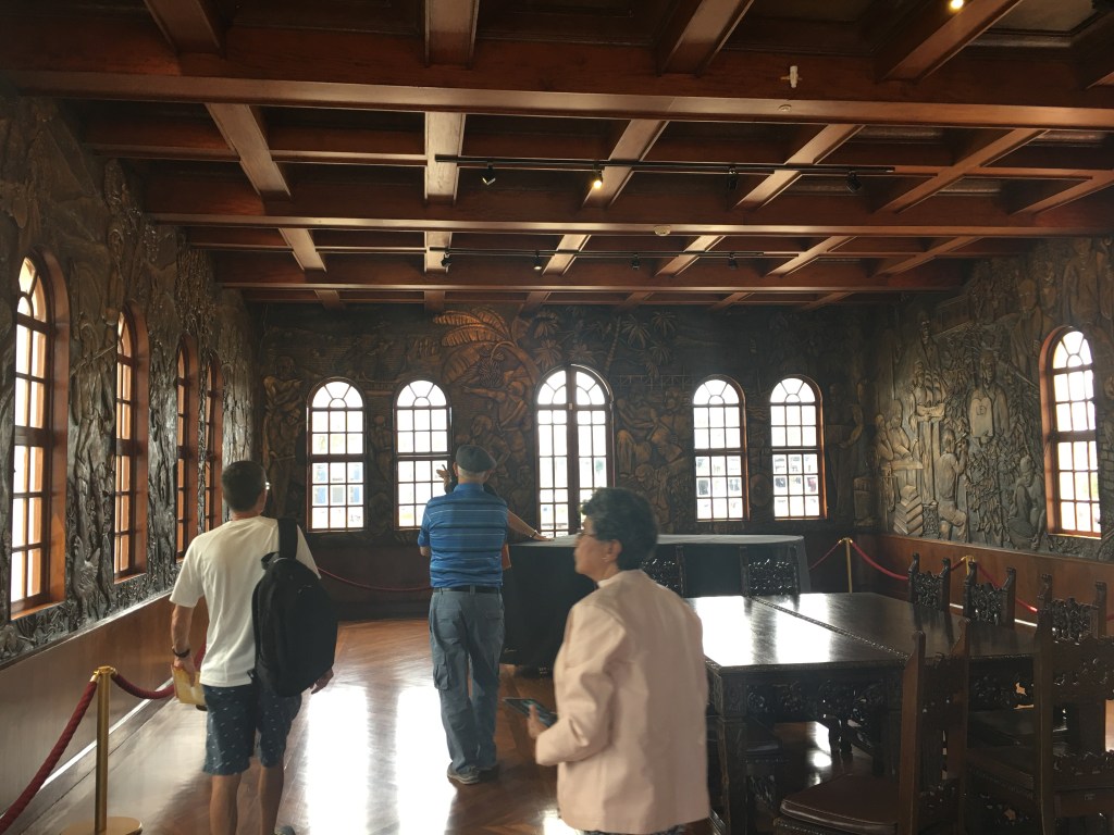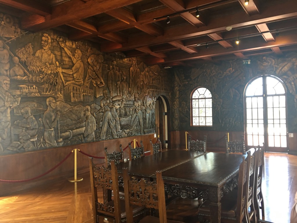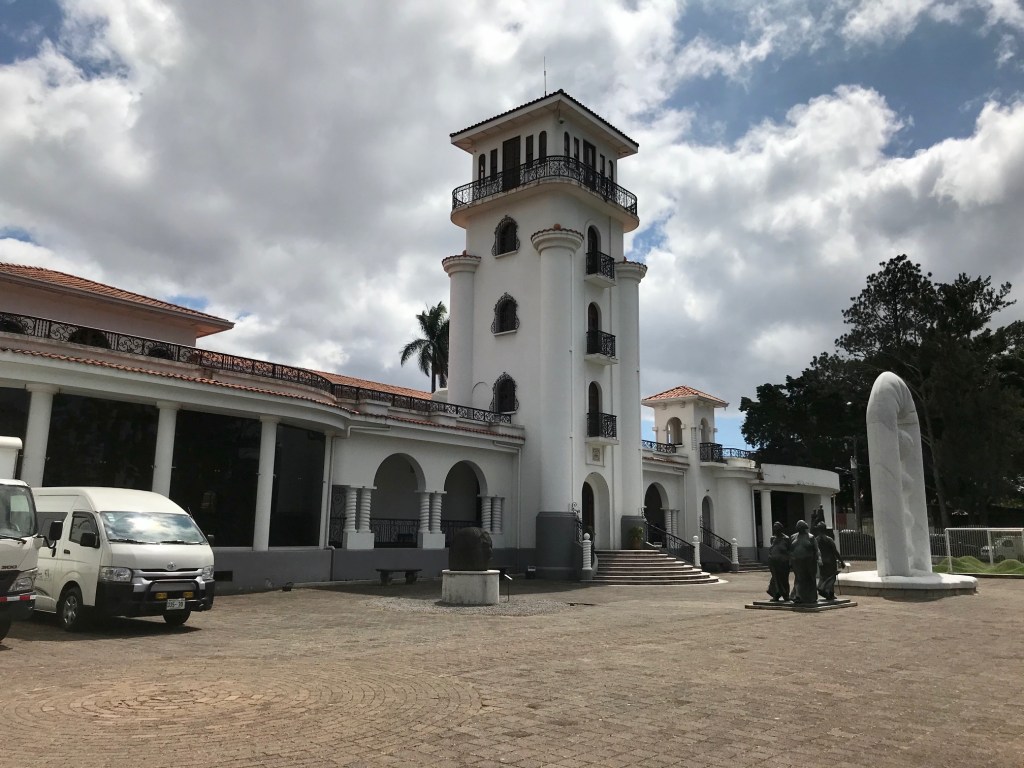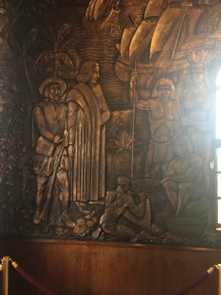 The Salón Dorado (Gold Room) is the old diplomat lounge on the second floor of the art museum that houses a 3D mural on the four walls depicting the history of Costa Rica. Our tour guide attempted to lead us through all of it. We were able to follow what he was saying on the first wall, depicting nature and indigenous peoples, and could spot Christopher Columbus on the second wall. But, by the time we got to the fourth wall, we were admittedly, very confused. At that point our guide attempted to explain changes in government and leaders that occurred in quick succession in the 20th century. This inexplicably led to our guide telling us that he was educated in a Jesuit school, seriously considered the priesthood for about six months, and speaks fluent French, which he then proceeded to demonstrate. I have no idea how we got from one thing to another and have no idea if he was really speaking French – it kind of sounded like it could be, but anyone with a nasally tone can sound like they are speaking French.  With our heads spinning we quickly used the bathrooms and jumped back into our van. We did not explore the rest of the park nor the stadium.