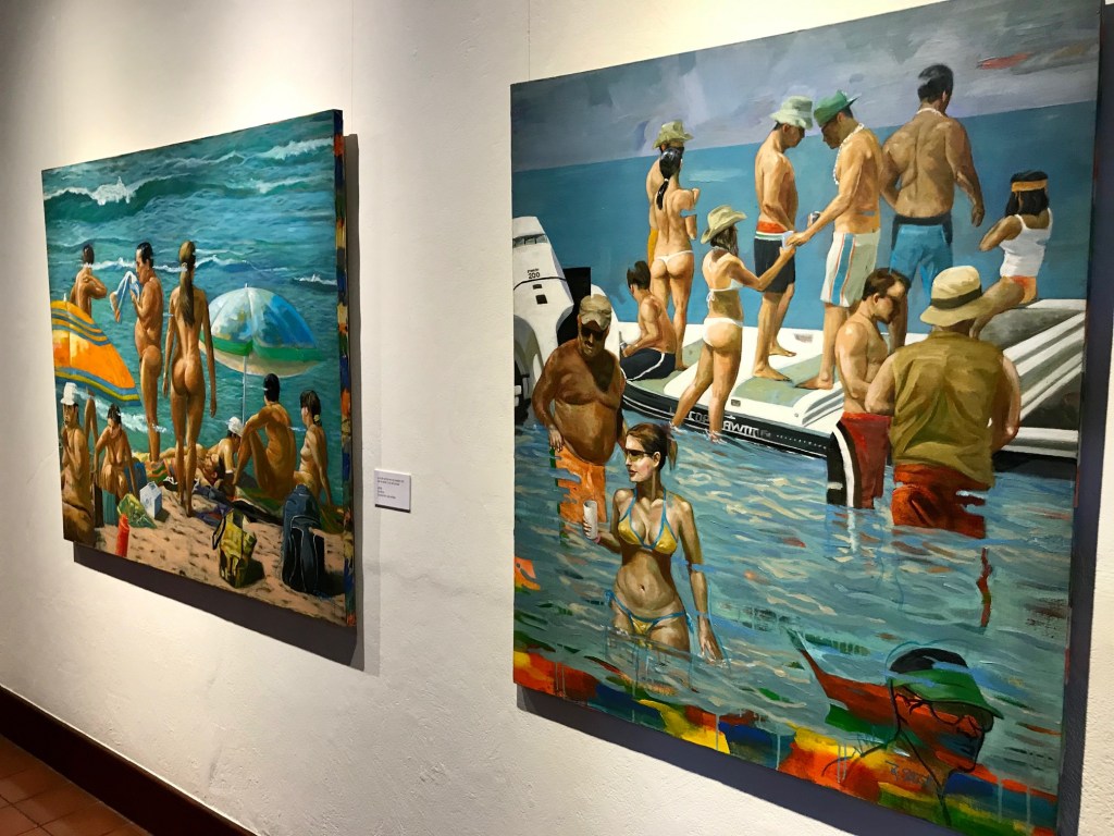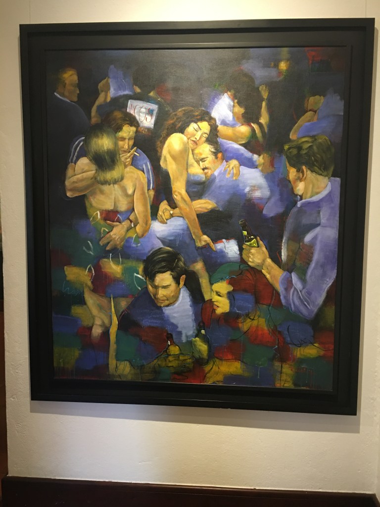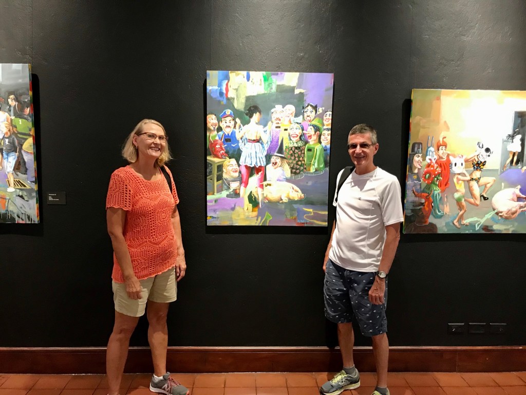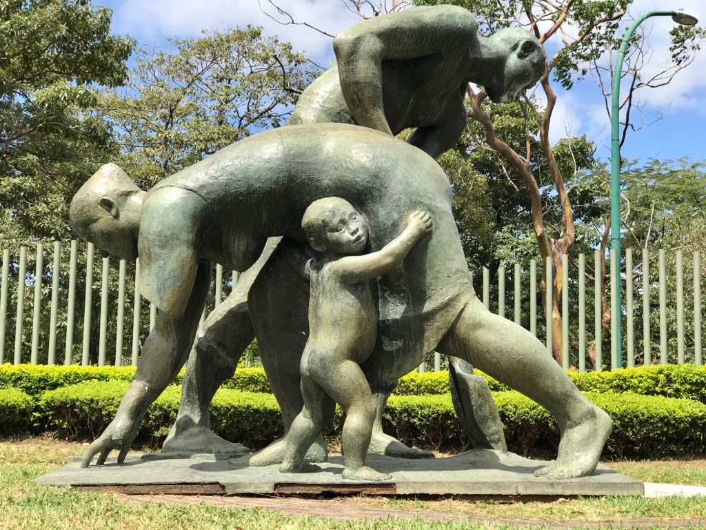 In Sebana, we toured the small Costa Rican Museum of Art. The building is the old airport terminal.  It held colorful pictures by Costa Rican artists depicting life in Costa Rica, with sculptures outside.