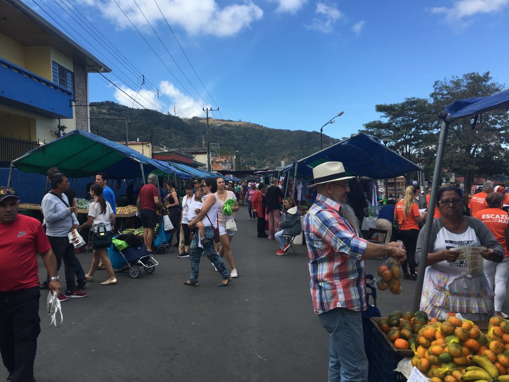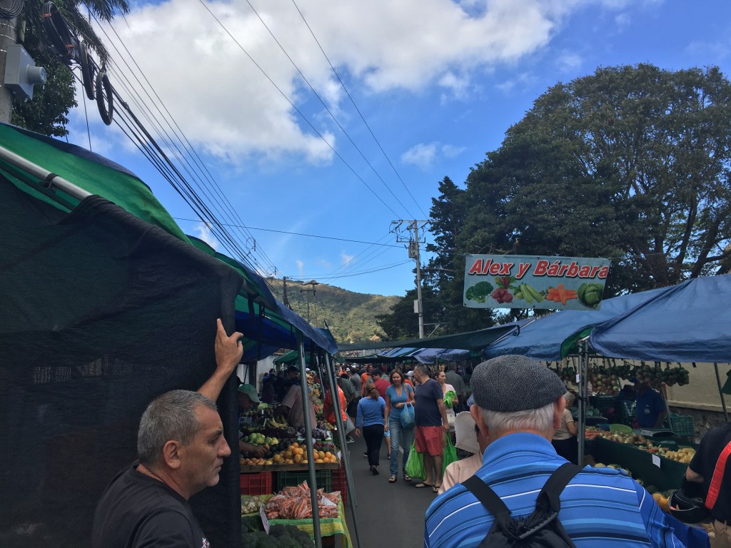 Our first stop in Escazú was the farmer’s market that is held every Saturday in old Escazú. The central area of old Escazú is laid out in traditional Spanish style, with a church, a central park, and the municipal government building across the street.  We had been there before, but our neighbor hadn’t.  Our tour guide stopped and talked to a young marimba player, that he seemed to know. It looked like there was going to be a parade where people wear large puppet heads. We hadn’t seen that before but had heard about it – it’s a “thing” in Costa Rica. Unfortunately, our timing was such that we didn’t see the parade.  We walked through the market, with the other woman on the tour filming everything on her iPad, as she would continue to do throughout the entire tour.
