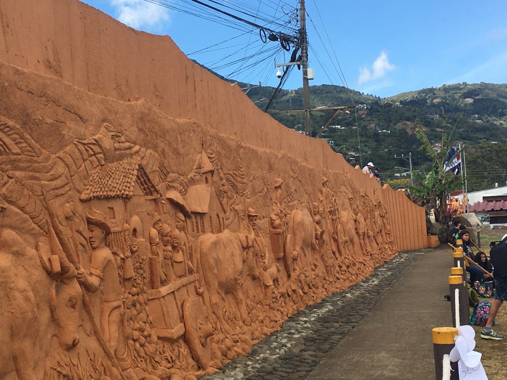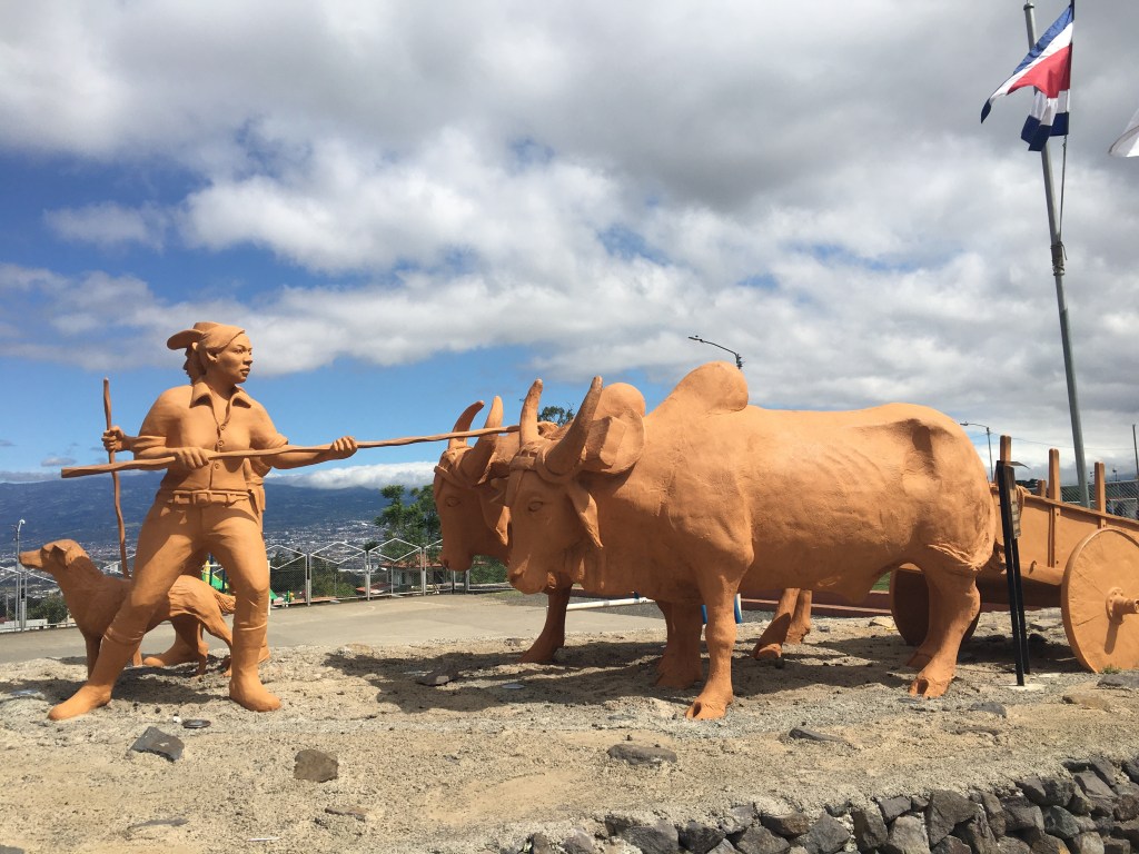 After we left the farmer’s market, we drove to San Antonio de Escazú, which is further up the mountainside. None of us had been there before. In the San Antonio Plaza, across from San Antonio Catholic Church, there was a wall commemorating the history of Escazú and a monument to the ox carts.