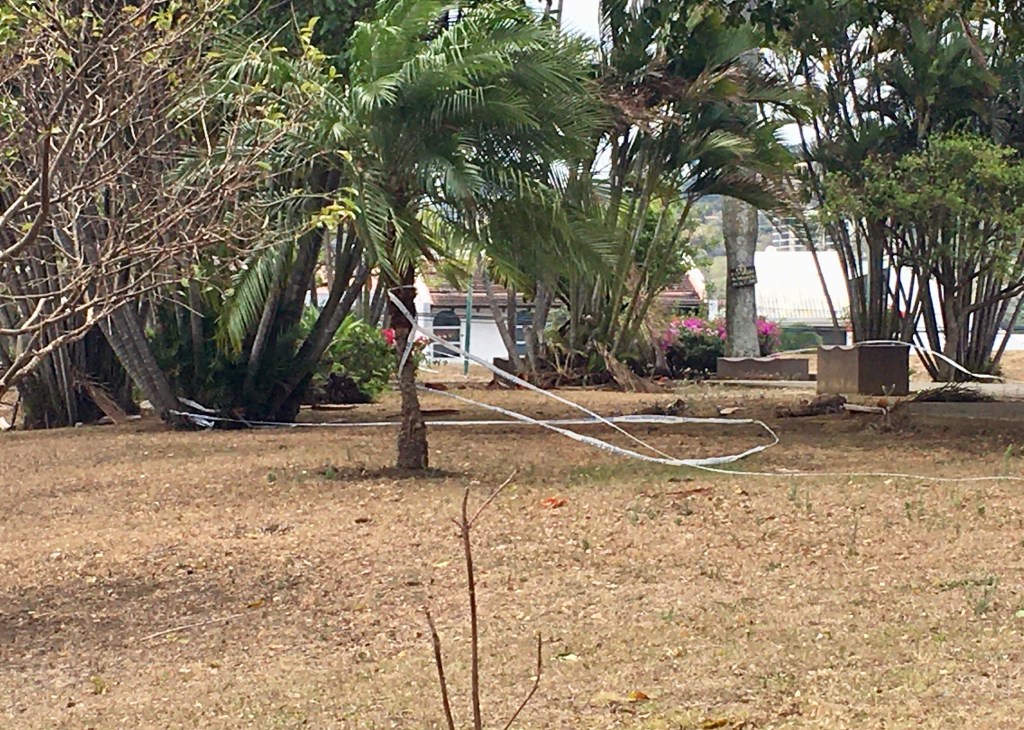 There is another park, Parque Iskatzu, that doesn’t have a fence of any type. The city draped police tape around the center area of the park, where the cement benches were, to indicate that people shouldn’t use the park. There was nowhere to adhere a closure sticker. The police tape was ineffective for two reasons. First, people tended to ignore it. Secondly, the tape wasn’t strung up well, as it was strung around tree trunks, etc. and would end up on the ground after a couple of days, making it even easier to ignore. Then the city would come by again and drape the police tape in the same manner as before, with the same result.