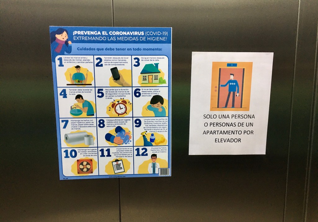 As the government announced restrictions, our apartment complex put up signs in the elevator. One sign provided “helpful” information hygiene. The second stated that only one person, or persons all living in the same apartment could ride in an elevator at the same time. It is a little frustrating to have the elevator doors open and see that there is someone in the elevator already, and not getting out. You just have to wait until the door closes again, the elevator departs, and then push the button again, to summon it.