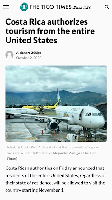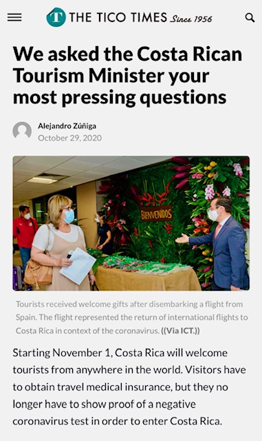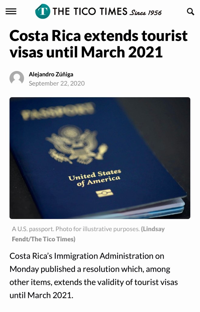 On October 22nd, we received an email from the US Embassy. The Ministry of Tourism announced that as of October 26th, visitors arriving to Costa Rica no longer needed to show proof of a negative COVID-19 test. The tourist extension until March 2, 2021, was still in effect. There was no update on the driving extension past November 18, but that usually came later, anyway.