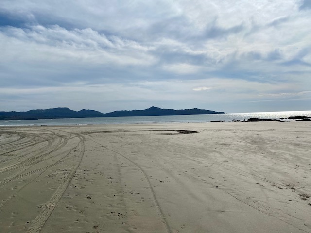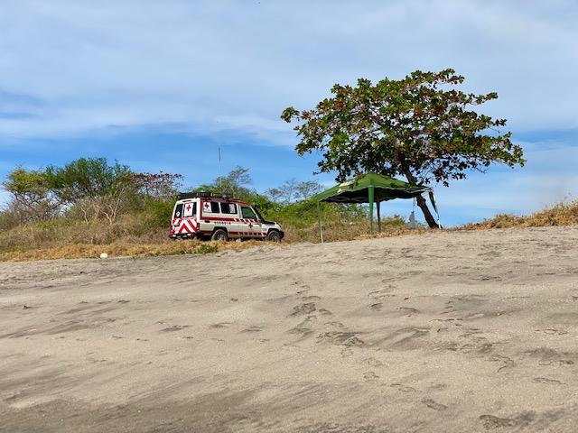 On this day there was an ambulance parked in the shrubs along the beach with a small tent.