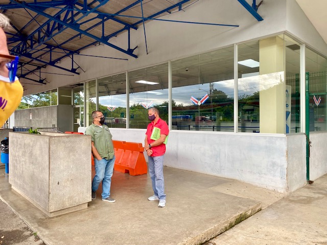 Claudio said that the only things we would need here were our passports and masks and to leave everything else in the van. I made sure I had my fanny pack with the passports, the PCR test for Nicaragua, my phone, and my cloth wallet. John had his billfold and phone. We entered the building – there was no one else ready to leave the country there, so we got right through. The customs official stamped our passport and we left. When we got out, our guide asked us to check that the customs official had stamped our passports twice.