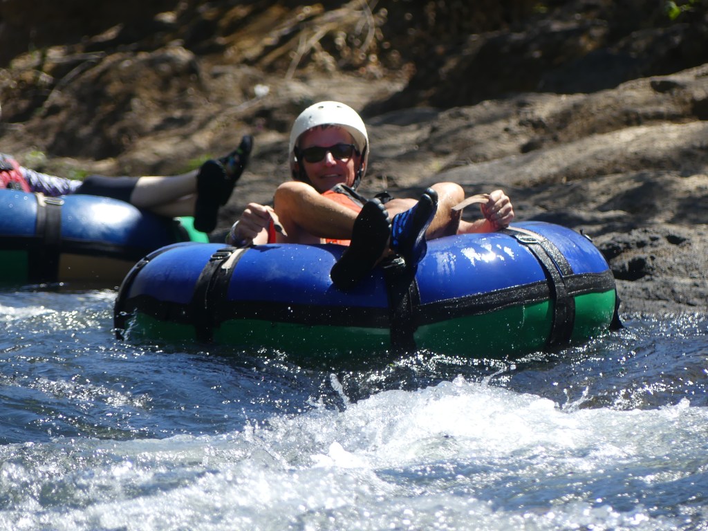 This was anything but a “lazy river” experience! We went careening through rocky rapids, with a few intermittent larger, calm pools.