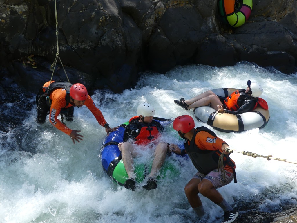 The guides were strategically stationed to ensure we made it through the toughest parts, securely fastened with harnesses and ropers for their own safety. Then they would swim ahead on their tubes to get us through the next rough spot.